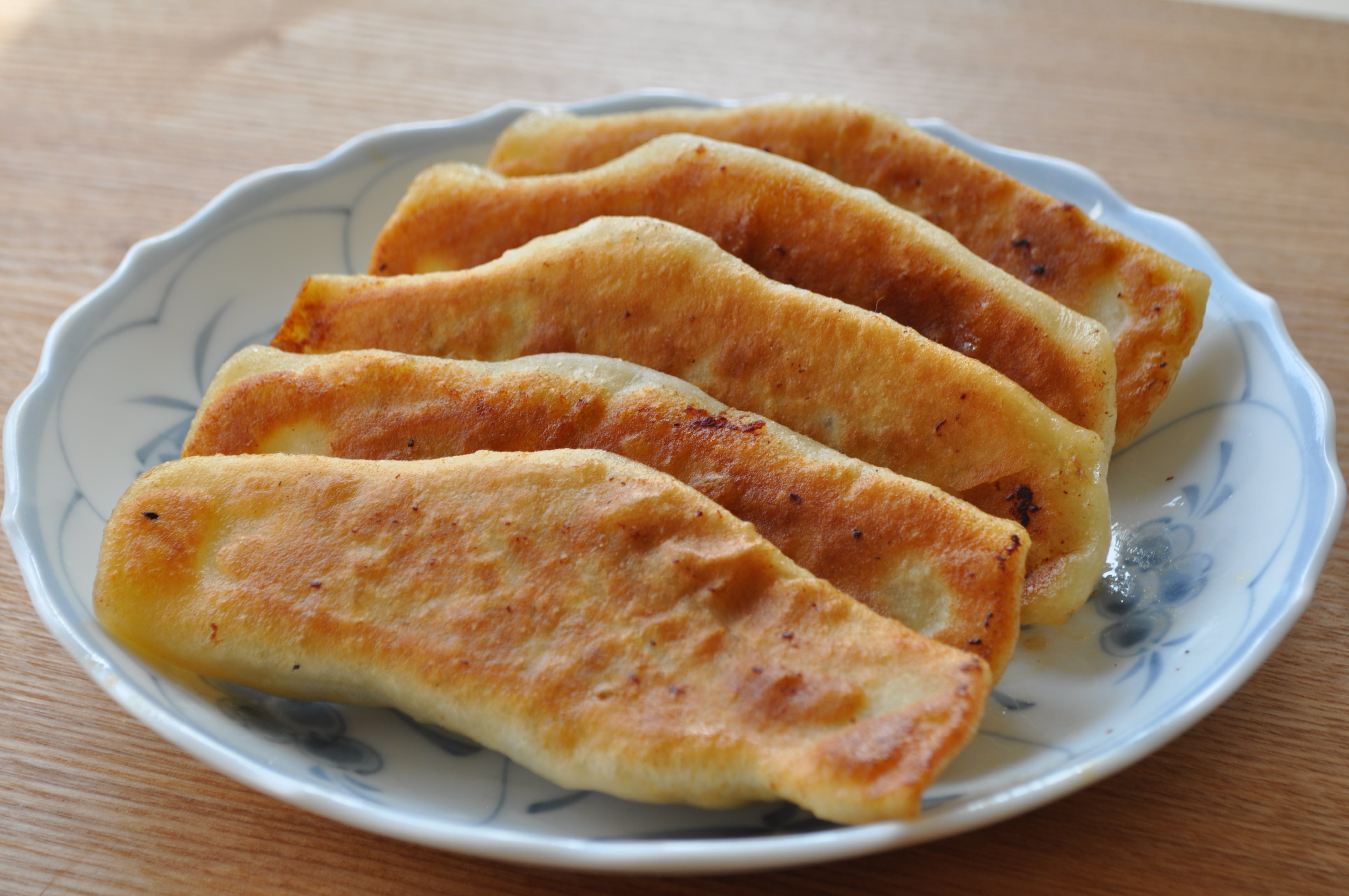 肉汁が溢れる大き目な餃子です。